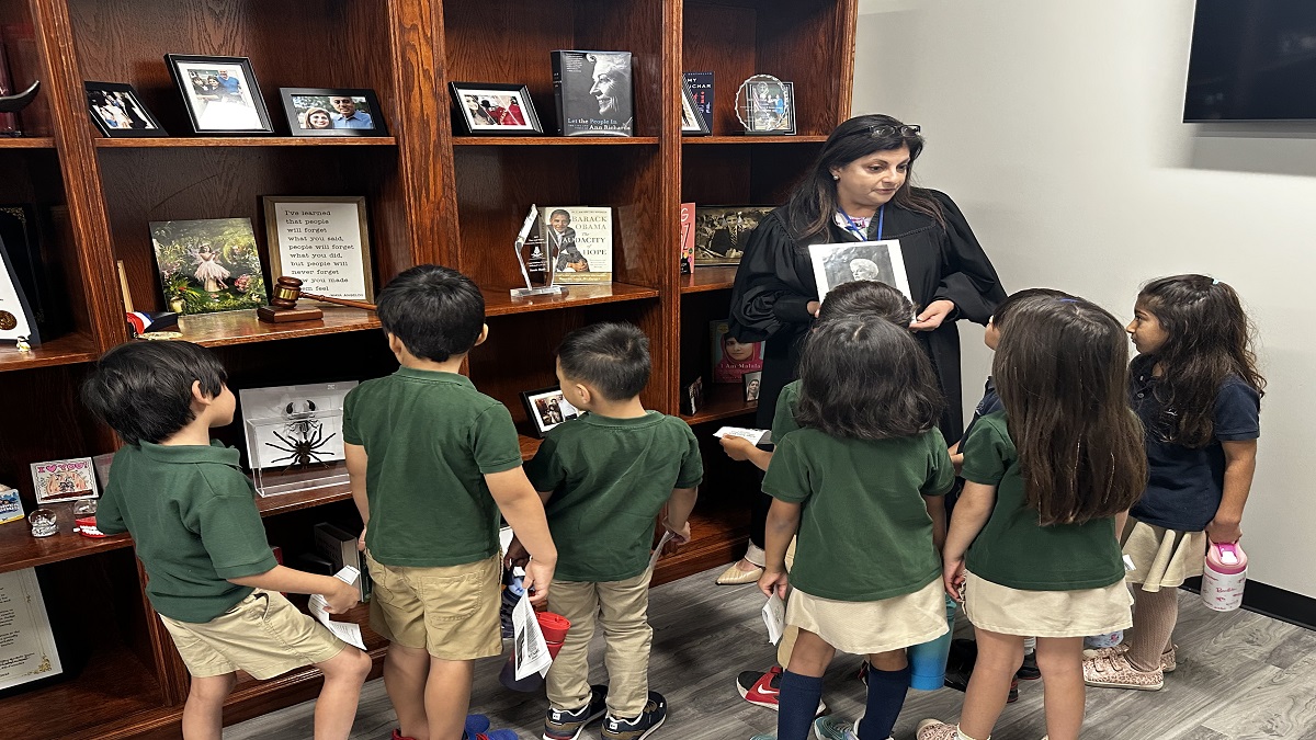 The visit extended beyond the courtroom into the judge’s office, where students were introduced to the idea of leadership, responsibility, and service. They listened attentively, observed respectfully, and demonstrated the grace and courtesy that are central to the Montessori environment.